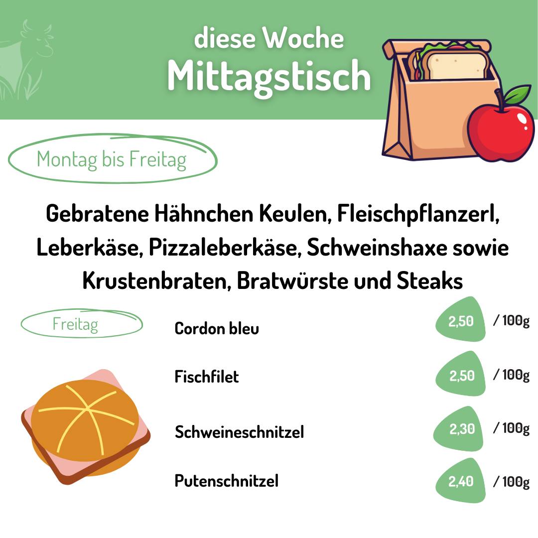 Jetzt anmelden und auf dem Laufenden bleiben! In unserem Newsletter findet Ihr jede Woche die aktuellen Mittagsgerichte und Angebote aus unserer Metzger-Theke.